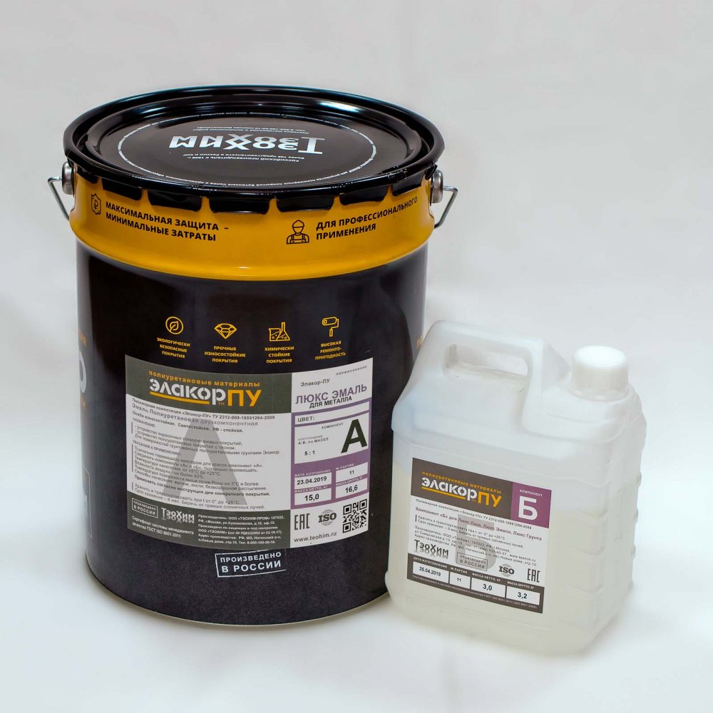 Полиуретан-цементный грунт "Элакор-ПУ Люкс Эмаль-Т - тиксотропная полиакрилат-уретановая двухкомпонентная эмаль. Образует высокопрочное износостойкое покрытие с высокой атмосферостойкостью и химстойкостью, светостойкостью, УФ-стойкостью. Для устройства за